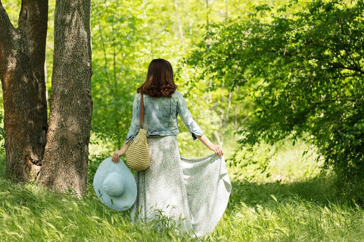 Tall women are better suited to wear A-line or side slits denim skirts. That's because you're a perfect figure. For more petite ladies, you might try a maxi-style denim skirt that ends your height problem. It's like having magic makes you look even cuter.