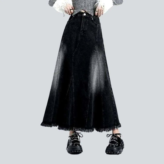Floor-length sanded denim skirt