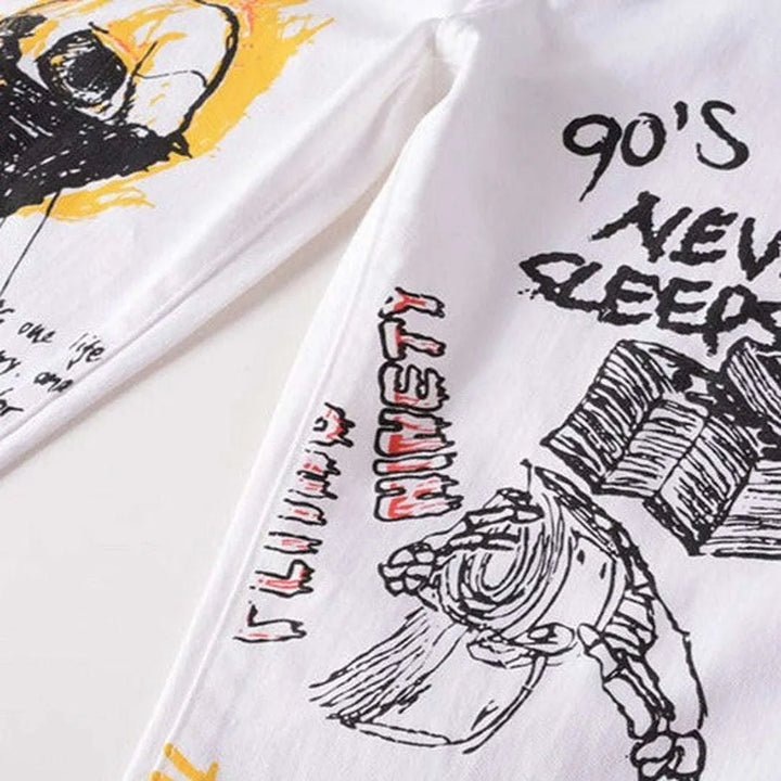 This Y2K-inspired slim-fit jeans is a must-have for any fashionista who appreciates the free-spiritedness of the millennium era. From its flame-painted print to its stretchy medium-waist silhouette, the jeans flaunts timeless flair with a modern twist.