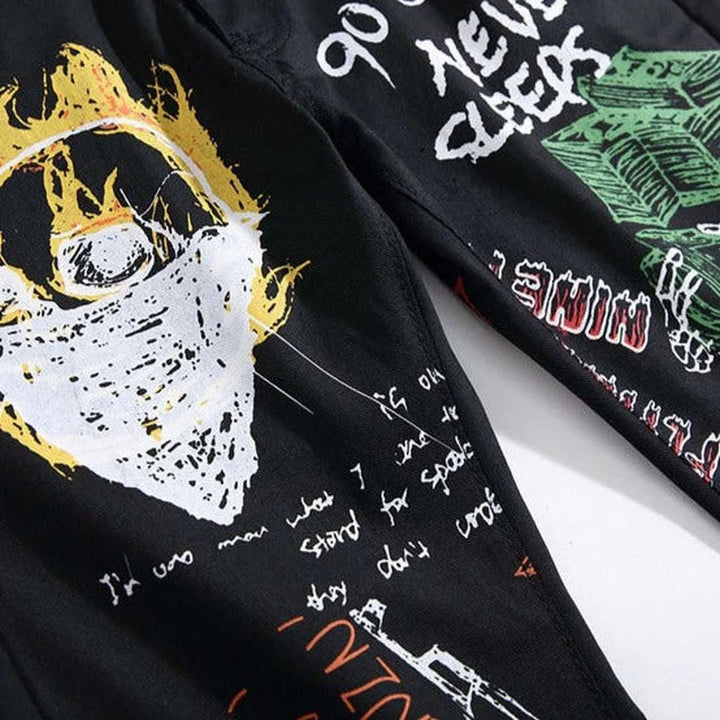 Introducing the 2023 Spring-Summer Collection a captivating flame-painted men's jeans, perfectly embodying the edgy Y2K style!