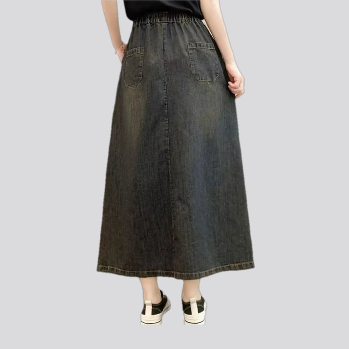 Artistic high-waist boho denim skirt