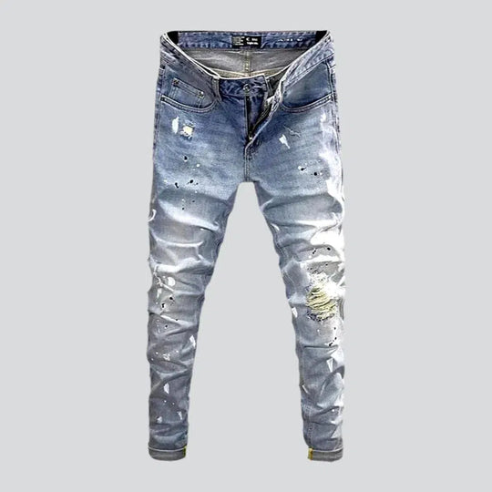 Ripped light men's wash jeans