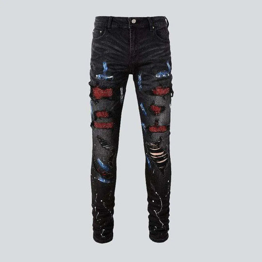 Black painted patch men's jeans