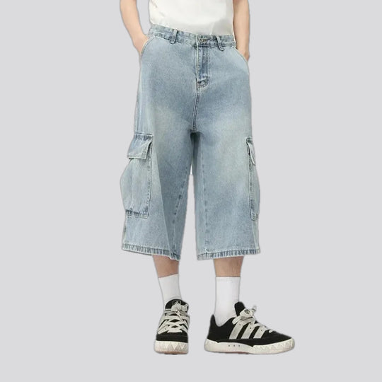 Baggy camo style men's denim shorts