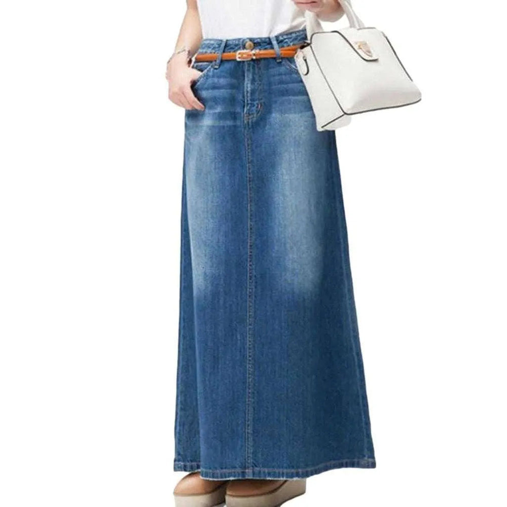 Introducing our stunning high-rise maxi jean skirt, expertly crafted from a luxurious blend of cotton, denim, and polyester, designed to offer unbeatable comfort and style for every occasion.