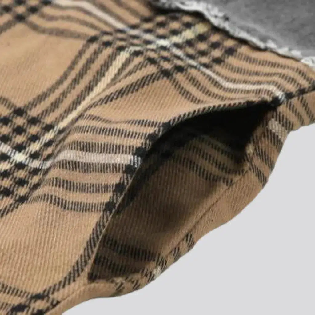• Mixed-Fabric Magic: The combination of denim and checkered fabric creates a bold and stylish contrast, making this jacket a standout piece in any wardrobe.